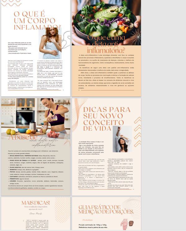 Foi desenvolvido para você desinflamar seu corpo, reduzir medidas e regular seu intestino com o guia de alimentação, um ebook cheio de dicas importantes que vai te ajudar a conseguir estabelecer o hábito de vida saúdavel que é um dos mais importante auxiliadores do seu novo estilo de vida.